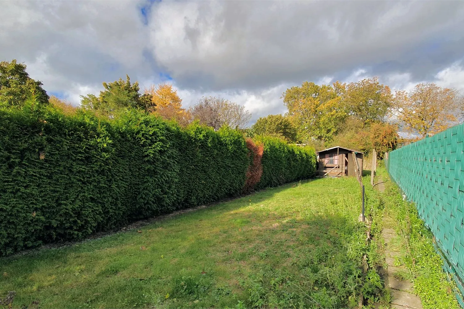 Naastgelegen bevindt zich een eenvoudig ingerichte keuken met bijkeuken. De terrasdeur leidt naar de diepe achtertuin met gazon en moestuintje. Aansluitend op het hoofdgebouw is er een atelier met werkplaats en stalling. De achtertuin is eveneens bereikbaar via een zijpoortje aan de straatkant. Handig voor de container en de (brom-)fiets!