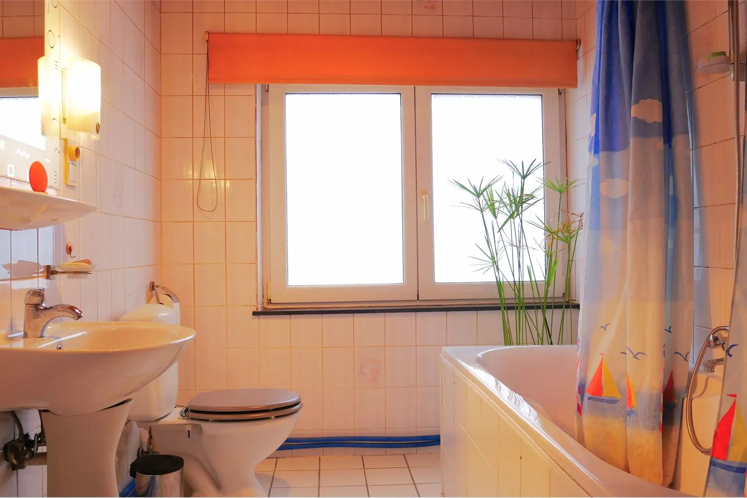 Op de 1ste verdieping geeft de nachthal uit op 2 slaapkamers; een bergruimte (met aansluiting wasmachine) en een badkamer. De slaapkamers hebben een oppervlakte van 15 m² en 13 m². In de betegelde badkamer is er een douche in ligbad; een lavabomeubel en een toilet.