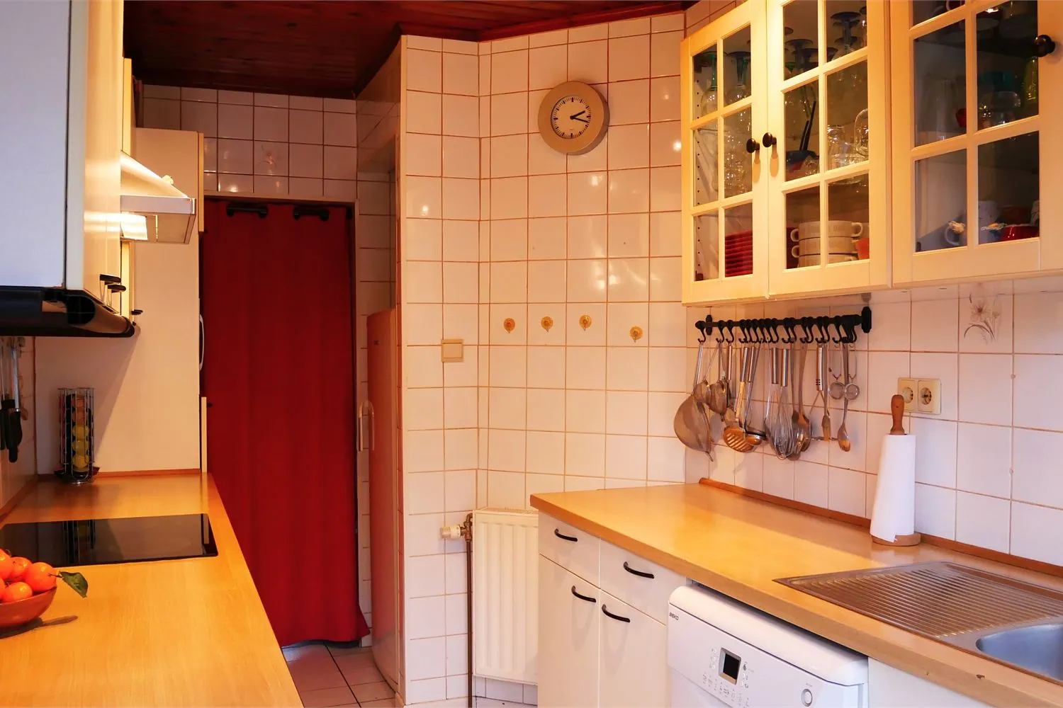 Naastgelegen is er een keuken voorzien van oven, keramisch kookfornuis met dampkap en een dubbele lavabo.