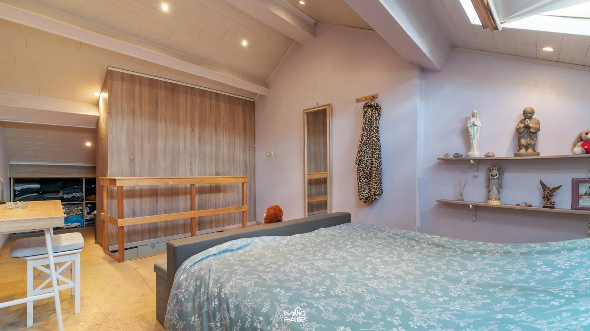 De nachthal op de eerste etage geeft uit op twee ruime slaapkamers van circa 12 en 14 m². Verder bevindt zich op de tweede etage nog een slaapkamer van circa 25 m². Deze is ook uitgerust met een dressing.