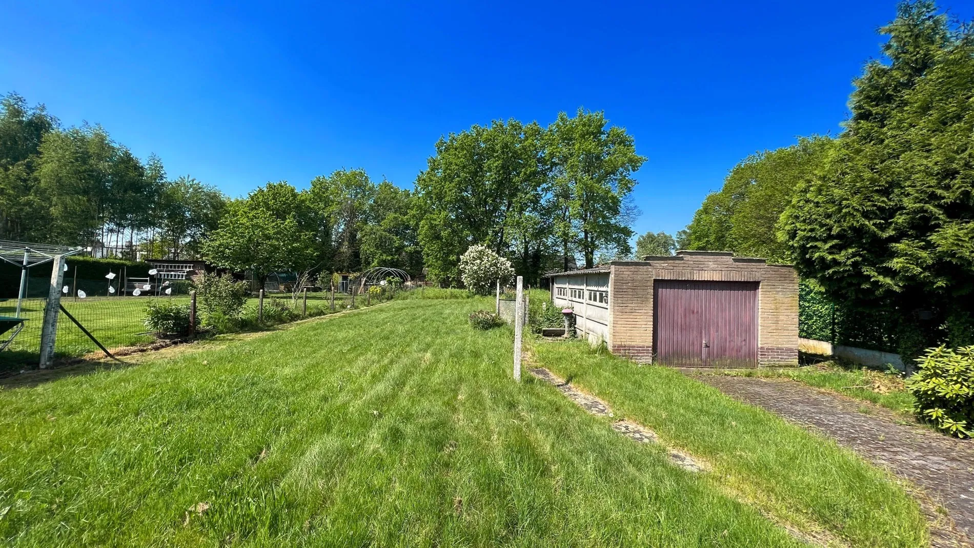 De zongerichte tuin is voorzien van een afzonderlijk garagegebouw.